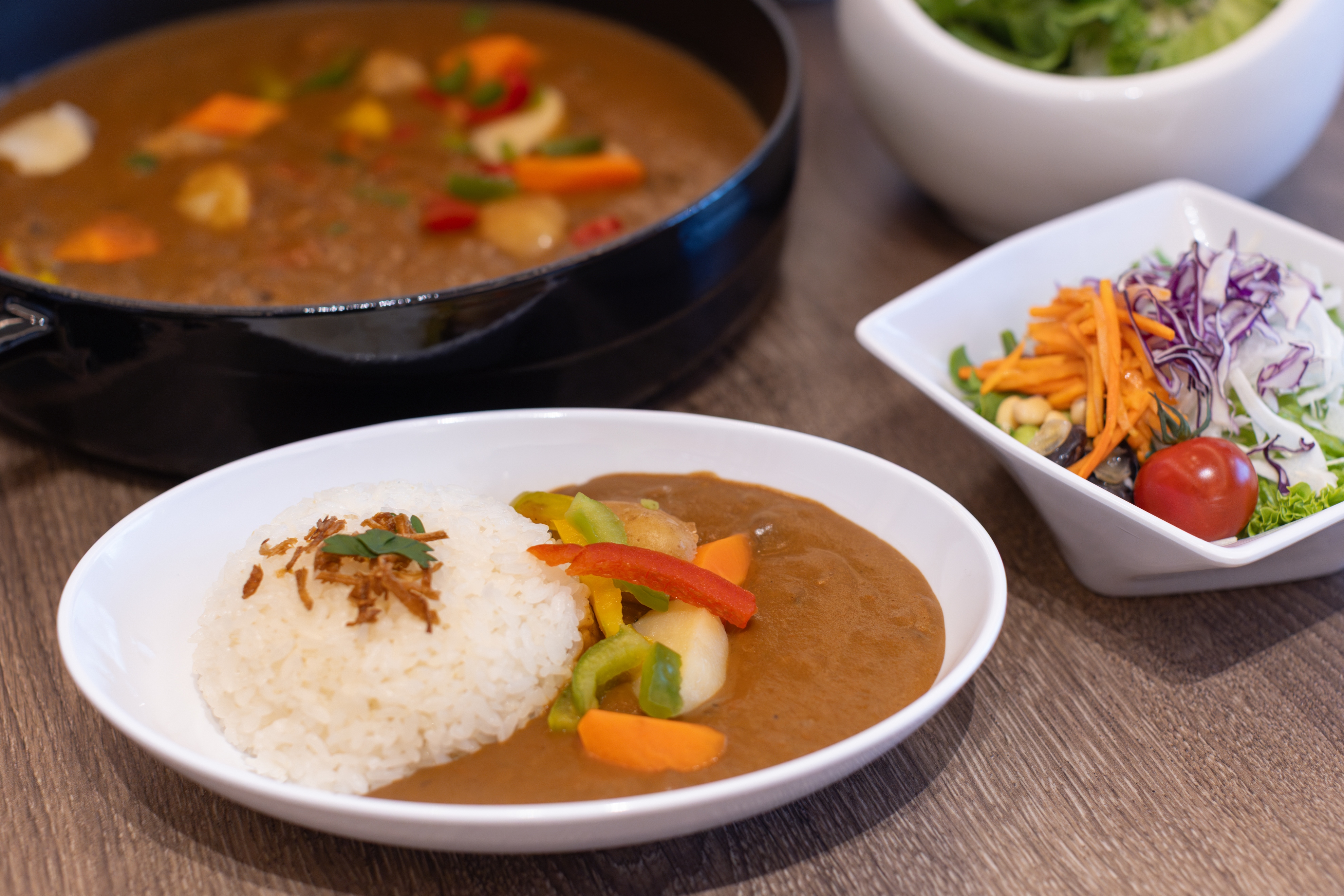 毎日の活力に「ビジネスカレー」 野菜サラダ&まどいカレーが食べ放題