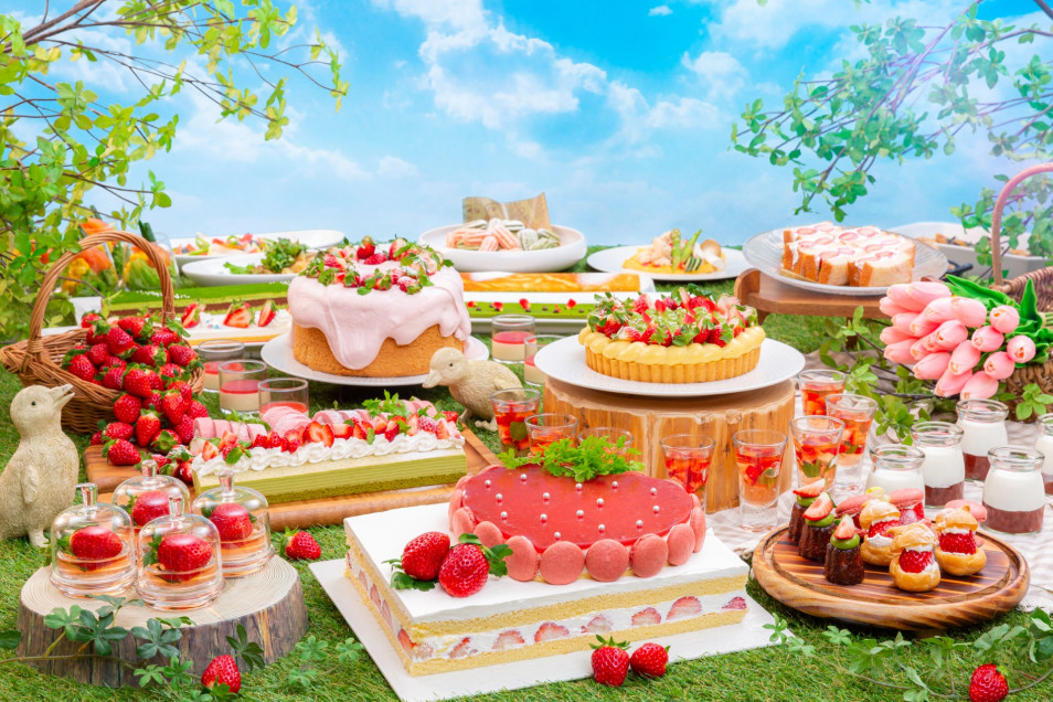 今年の「いちごスイーツビュッフェ」は、ストロベリーガーデンピクニックをテーマにイチゴを使用した華やかでかわいいスイーツ約20種類をご用意いたします。