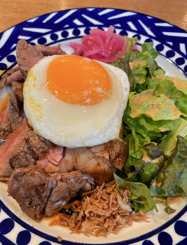 梅田にあるロコモコ屋さんでサーロインステーキロコモコ150㌘を食べました('ω')