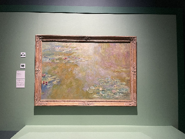 今回の展示会は1874年に第1回印象派展が開催されてから150年の節目を迎えることを記念して開催され、モネの代名詞として日本でも広く親しまれている〈積みわら〉〈睡蓮〉などをモティーフとした「連作」のほか国内外のモネの代表作約70点が展示されています。一部作品は撮影も可能で、多くの人が記念にと撮影をしていました。作品とともにモネのその当時の生活状況や変化も説明が記されており、絵の変化とともにモネの生涯も知ることができ、とても勉強にもなりました。